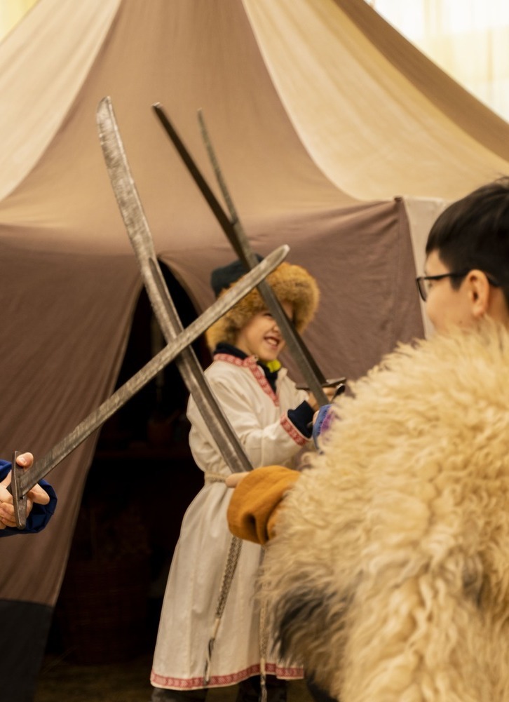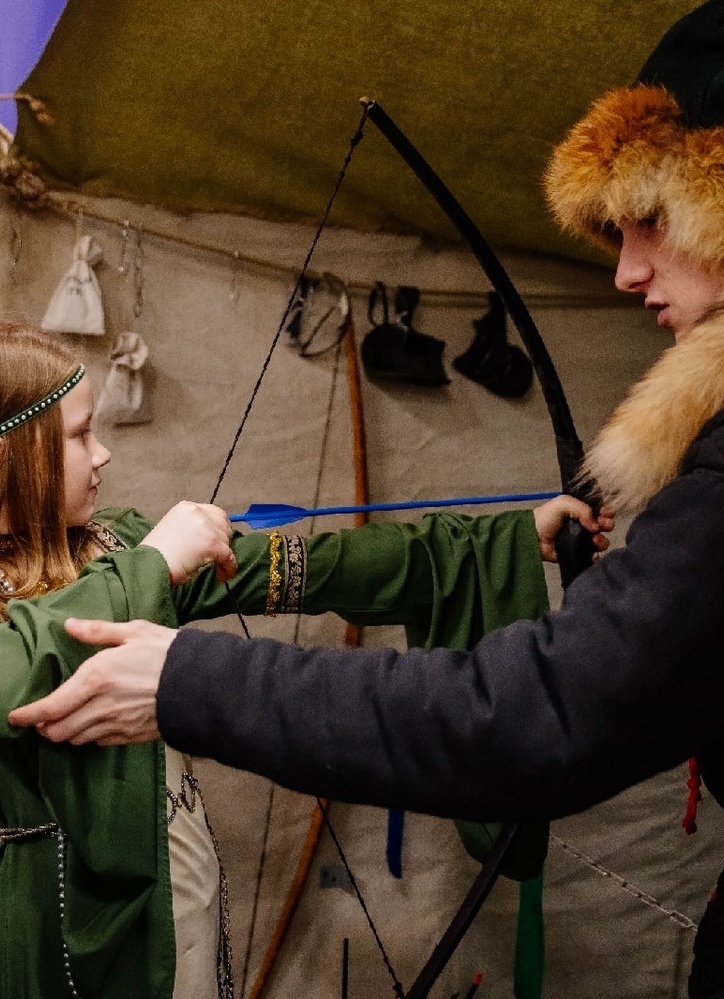 # Мастер-классы: cтрельба из лука и арбалета, современный мечевой бой на безопасном оружии; украшение глины набивным рисунком и др